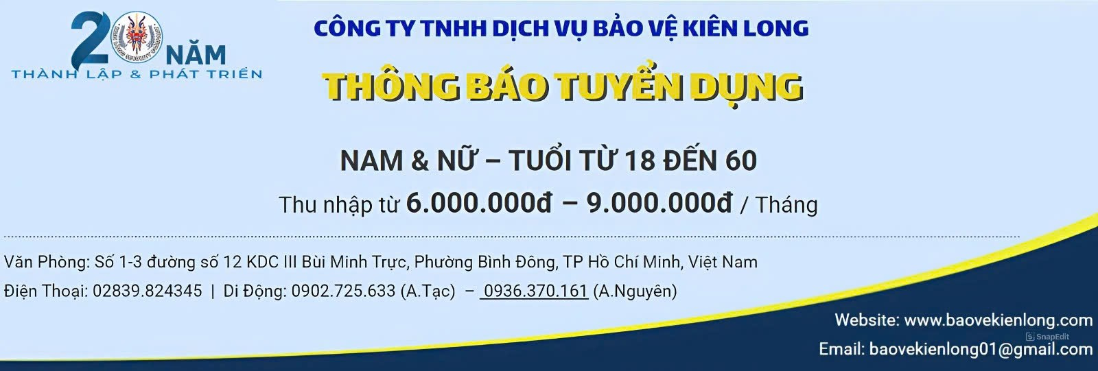 Đơn vị tuyển dụng: CÔNG TY BẢO VỆ KIÊN LONG
